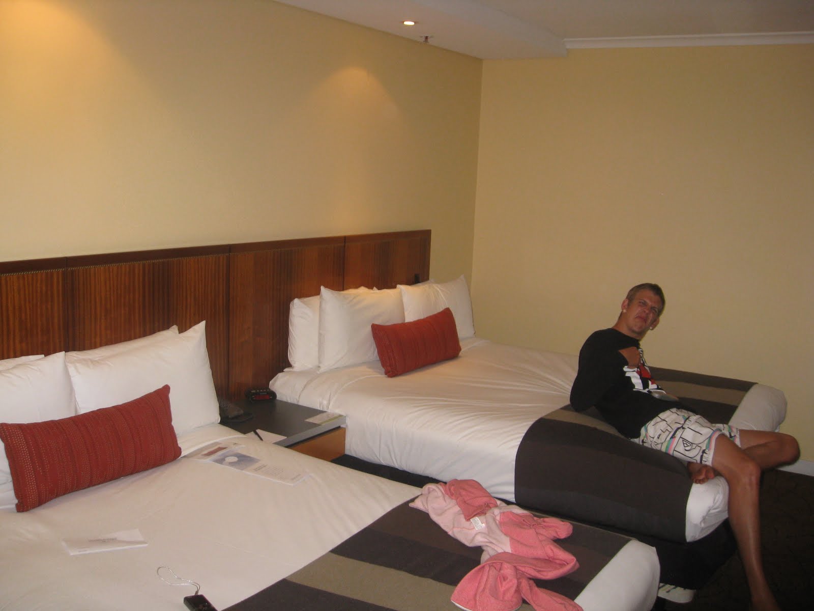 First I would like to personally thank Richard Branson for providing Jordan and I a free night in Brisbane, in a hotel far nicer than the two of us would have ever stayed in. To further explain, Virgin Blue airlines experienced a major computer malfunction a day before our return flight. For over a week Virgin Blue flights were delayed, postponed, and even canceled. For many this sounds worse than coming home from the trip to find your car stolen, but for Jordan and I it was the perfect way to top off our trip. Can you say vacation extended? Because our flight from Mckay to Brisbane was an hour late, we missed our connection to Sydney and got a free night in Brisbane! Our throne in the heart of downtown Brisbane made us feel like kings (if only Virgin would cover our late night room service too). Luckily, Brisbane it turns out is a very small city, with not a whole much to do, so one day was perfect for us. The sun was shining and we were in no hurry to do anything in specific. After wandering around for awhile we were caught in a monsoon like storm that came out of nowhere. We took shelter at a local bar and experienced Fat Yak beer.. mmmm... in a search for food we crossed the river and stumbled upon an art gallery, since we were in no rush we figured if its free why not? While admiring the Australian art in the gallery another storm was brewing. In desperation we swam back to the hotel, where we changed out of our scuba gear and put on a fresh set of clothes to weather the storm yet again. Eventually we made it to the airport only to hear that due to some circumstances we would be able to get our flight fully refunded if we so chose. I was pulling for ditching the flight and catching the train to the Gold Coast, why I could not rally for this one I'm not sure, so I guess we will have to go on another trip up north to check it out.